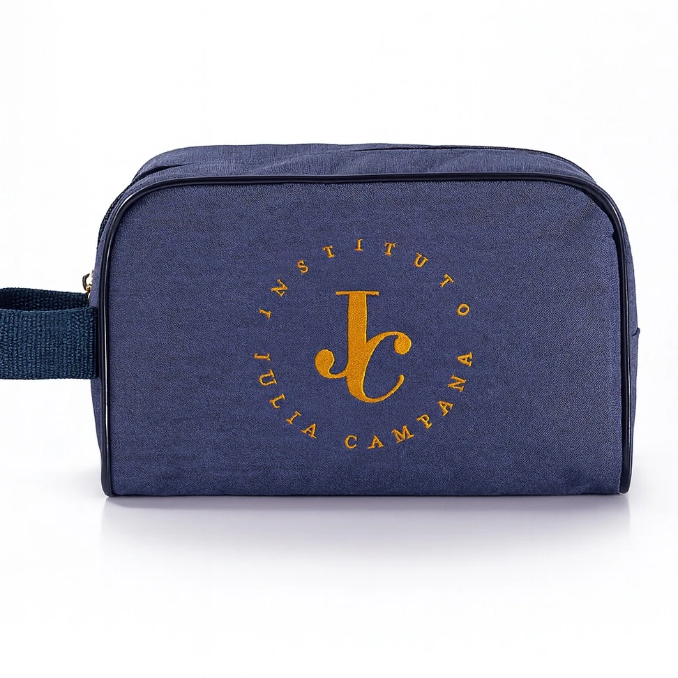 Seja em viagens, no dia a dia ou em eventos, o logo estampado na necessaire será visto por diversas pessoas, aumentando o reconhecimento da marca.