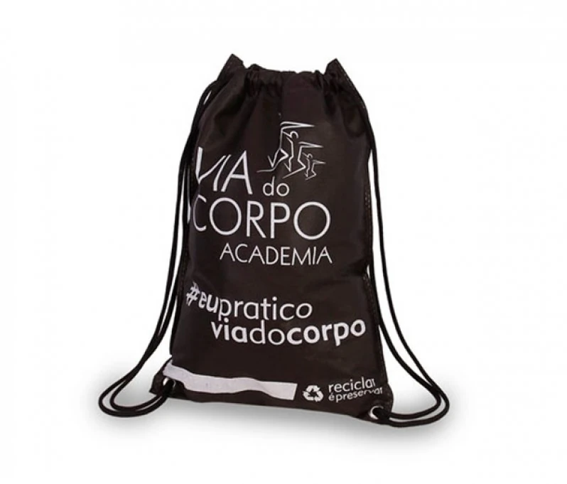 A inserção do logotipo ou slogan da empresa na sacochila personalizada promove uma maior visibilidade em eventos, academias e ações corporativas.